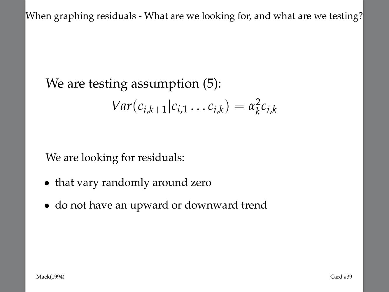 The second implicit assumption underlying the chain-ladder method states that accident years are independent. Describe a major consequence of this assumption. In addition, briefly describe a procedure for testing this assumption. The second implicit assumption underlying the chain-ladder method states that accident years are independent. Describe a major consequence of this assumption. In addition, briefly describe a procedure for testing this assumption.