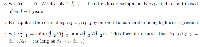 -Set equal to 0 -Extrapolate the series using log linear regression -Set equal to min(a(I-2)^4/a(I-3)^2, min(a(I-2)^2,a(I-3)^2