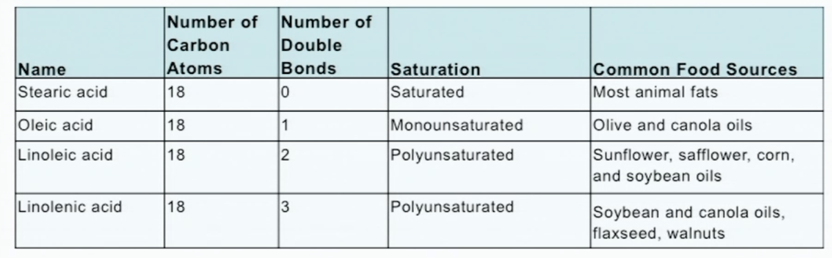 linolenic acid: 3 double bonds