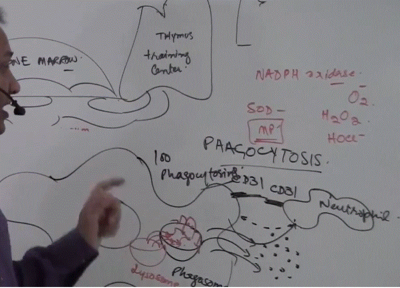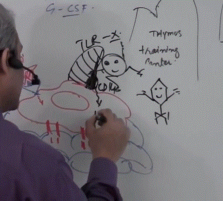 Acts on T0 and converts it to Th1 (which secretes IL2 which activates cytotoxic T cell and IFN gamma which stimulates the macrophage)