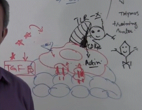 Acts on Th1, inhibiting it which will then allow Th2 to be more activie (it stimulates B cells which make Ab)