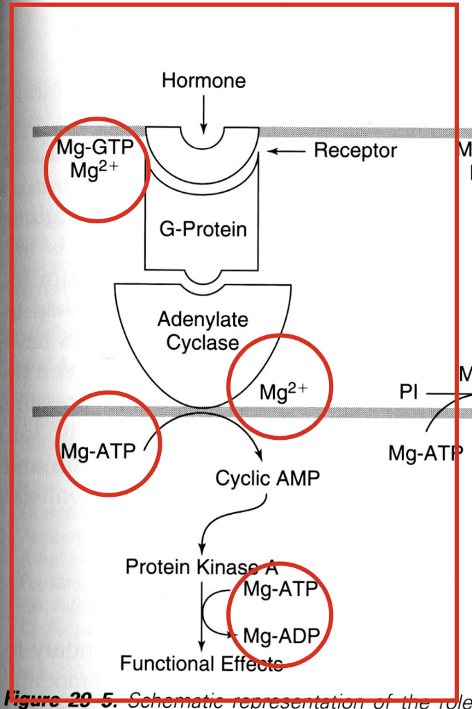 * Mg 2+ also required for ATP to drive cyclic AMP link and to provide energy for the Kinase A step.