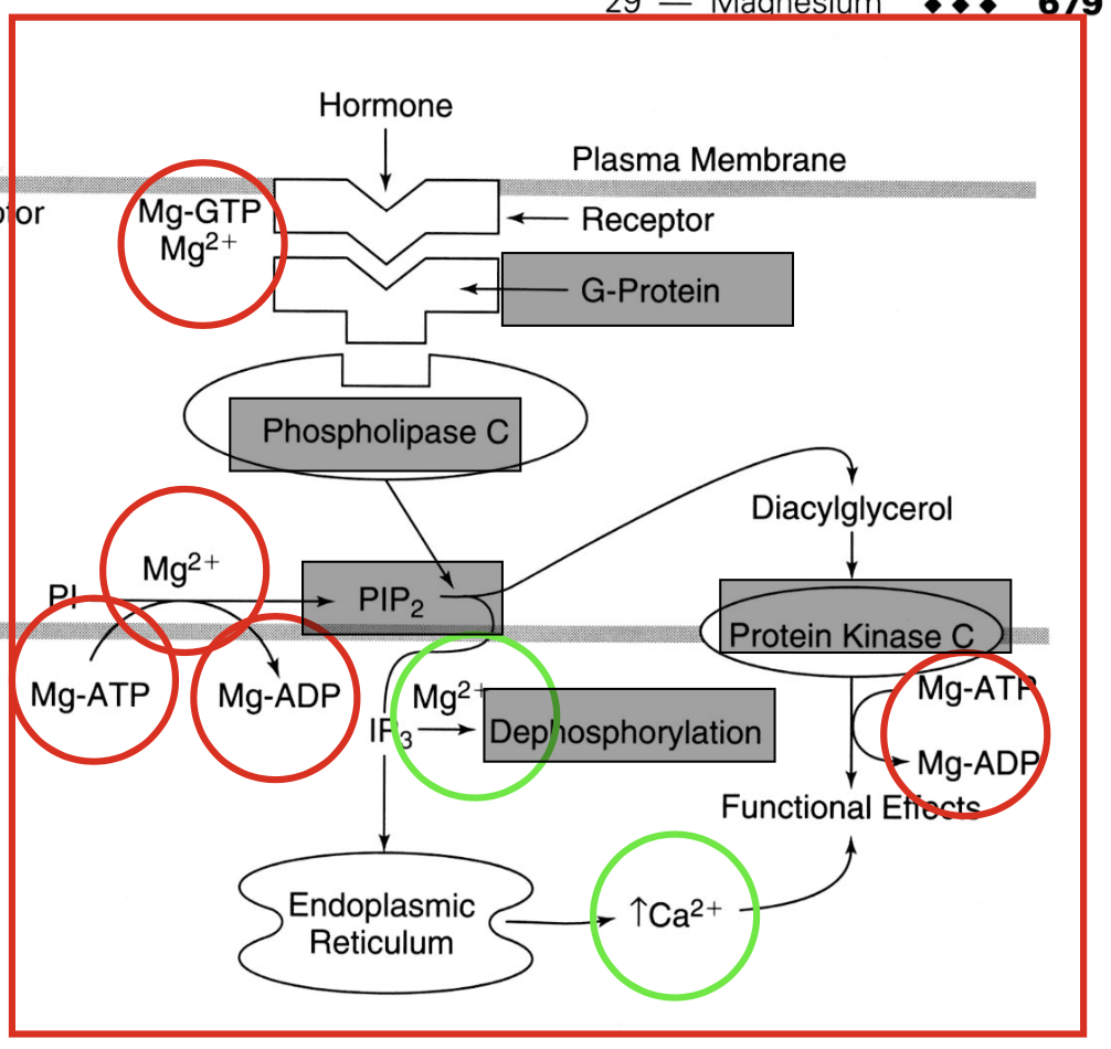 * Mg2+ provides phospholipid substrate (ATP) for PIP2 reaction