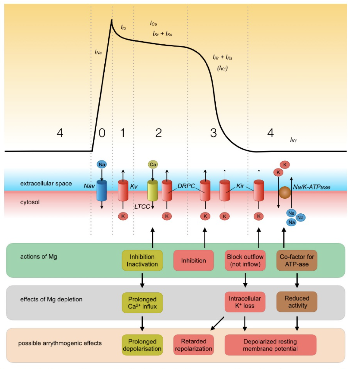 Cardiac excitation and potential effects of Mg depletion
