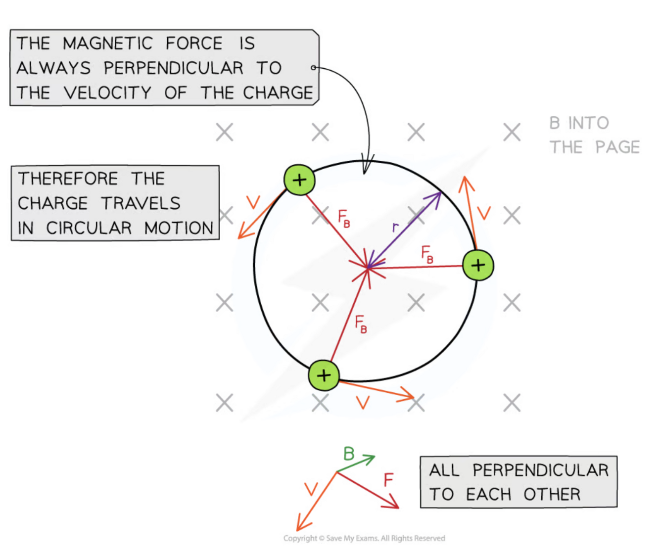 For example, when a positively charged particle enters a magnetic field into the page from left to right: