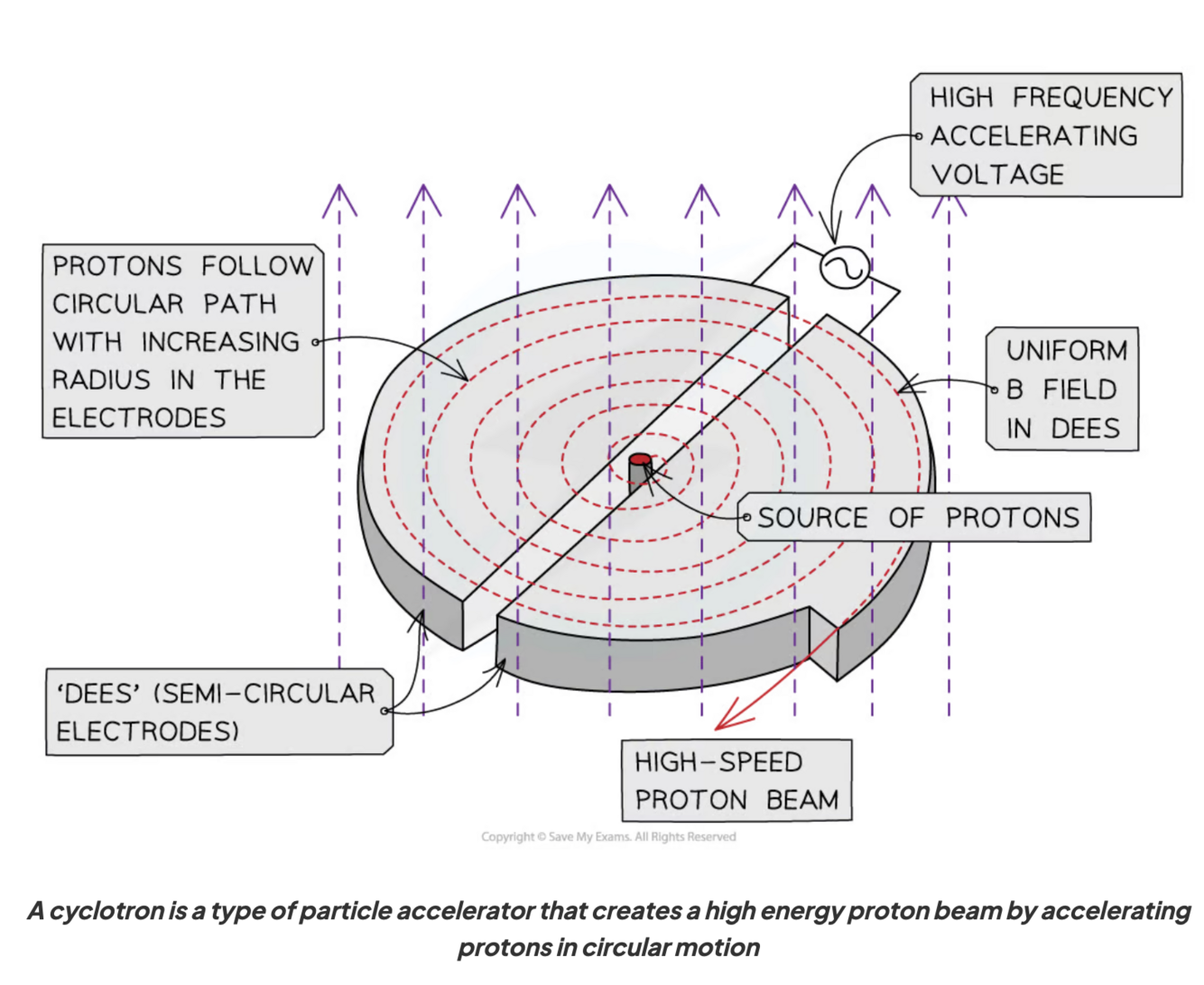 a type of particle accelerator that accelerates charged particles (eg. protons) from their centre along a spiral path
