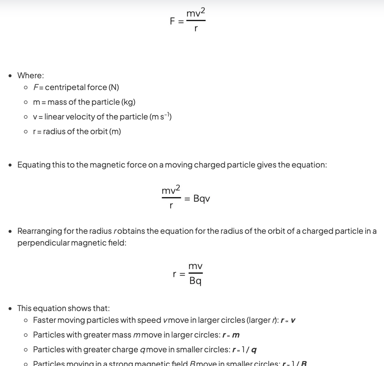 Derive the equation for the radius of the path of a particle travelling in a magnetic field