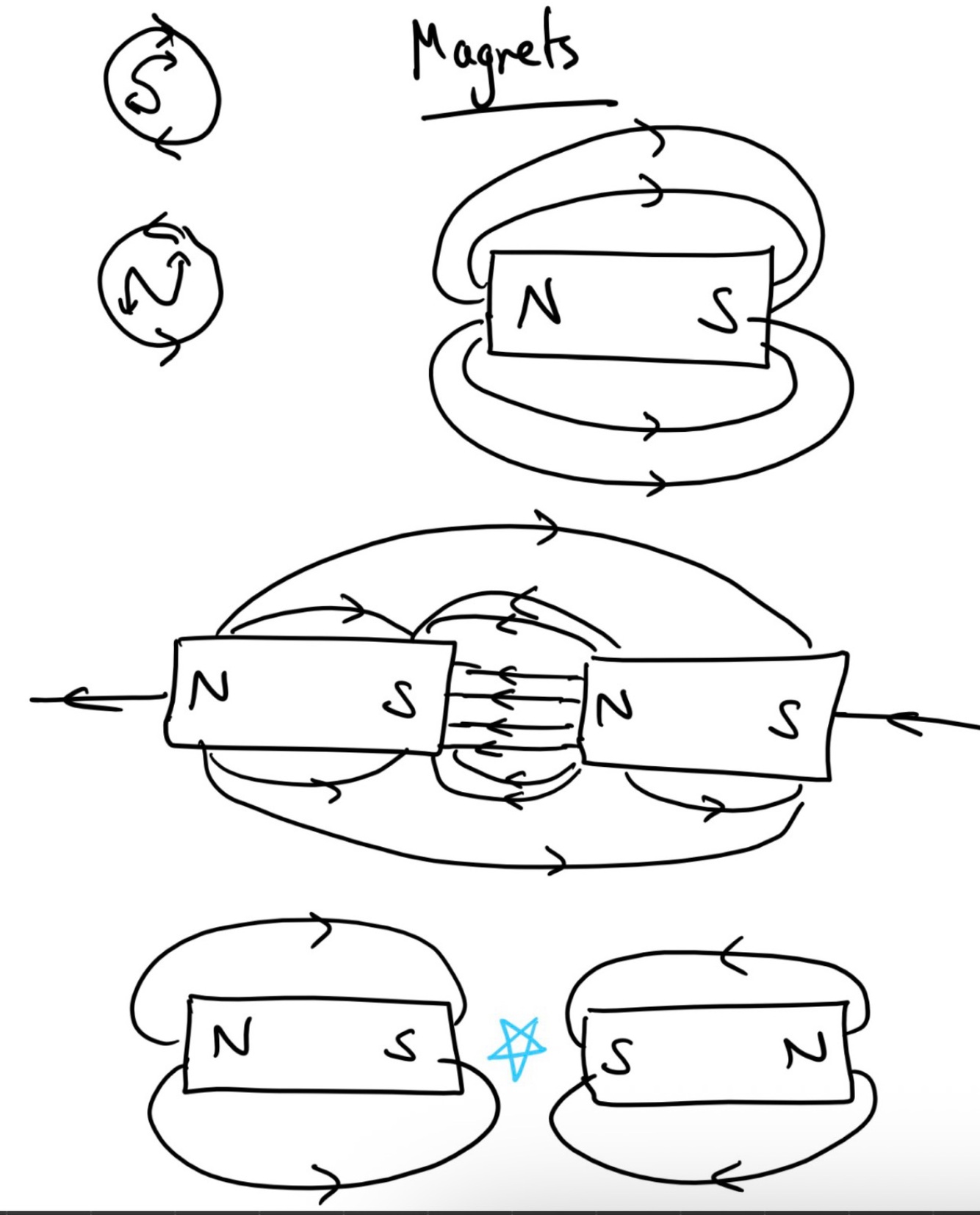 Magnetic fields around 2 adjacent bar magnets with same and opposite poles