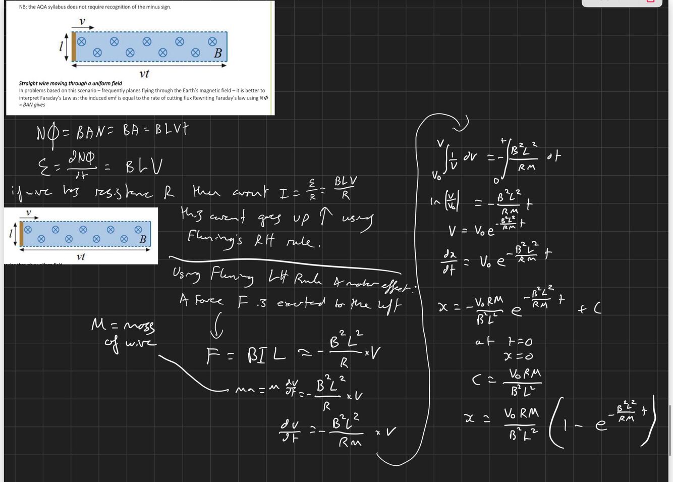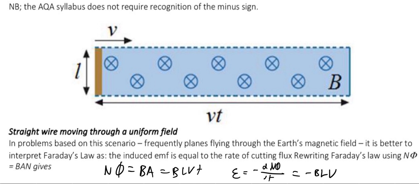 Straight wire (length l) moving through magnetic field (b) at velocity v - faraday