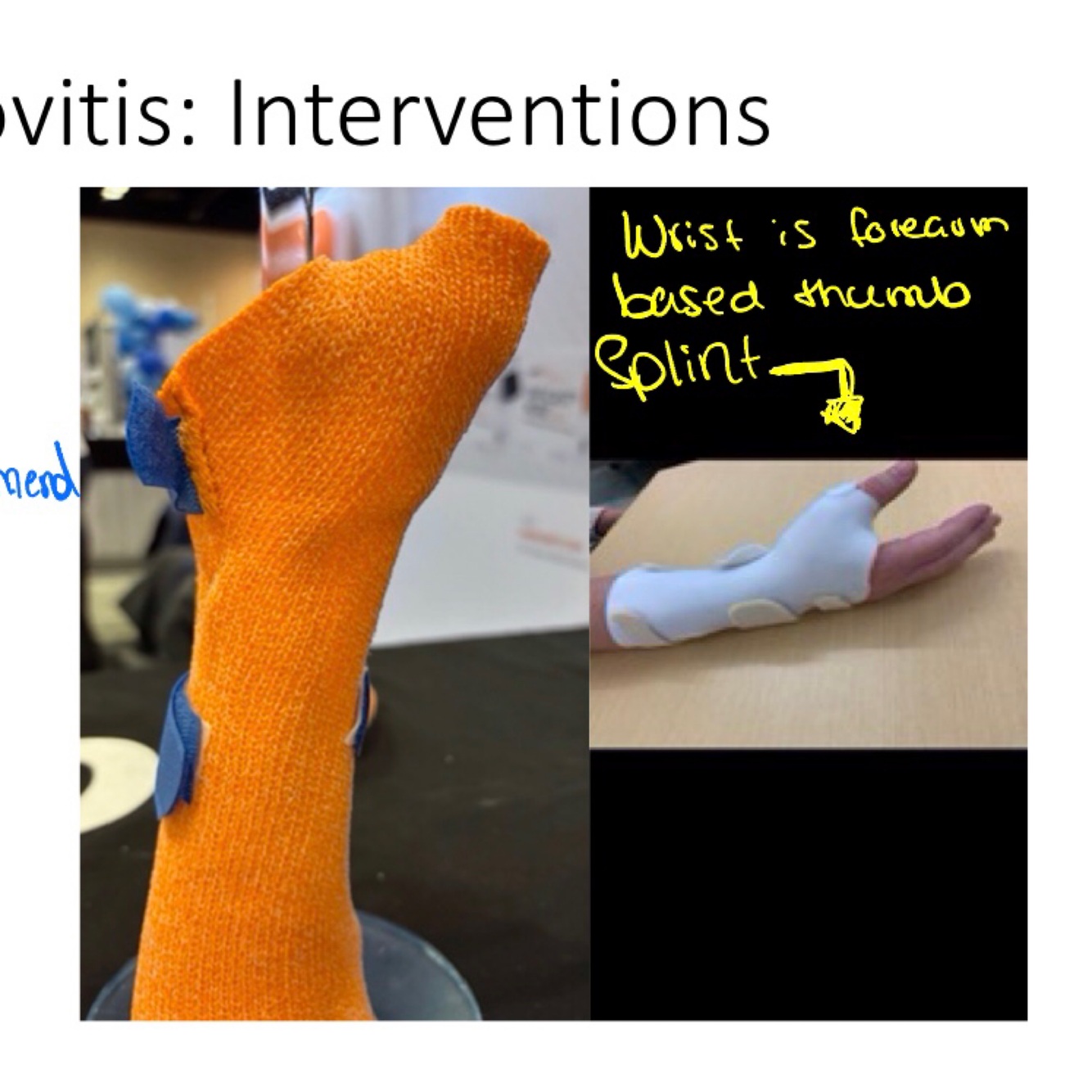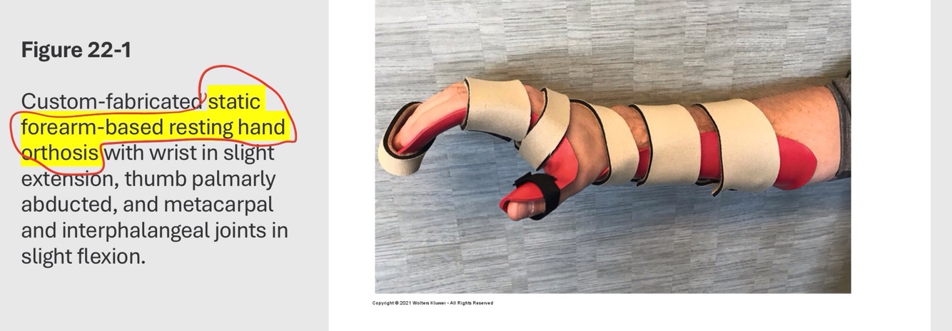 a) Forearm based thumb spica orthosis, worn only at night
