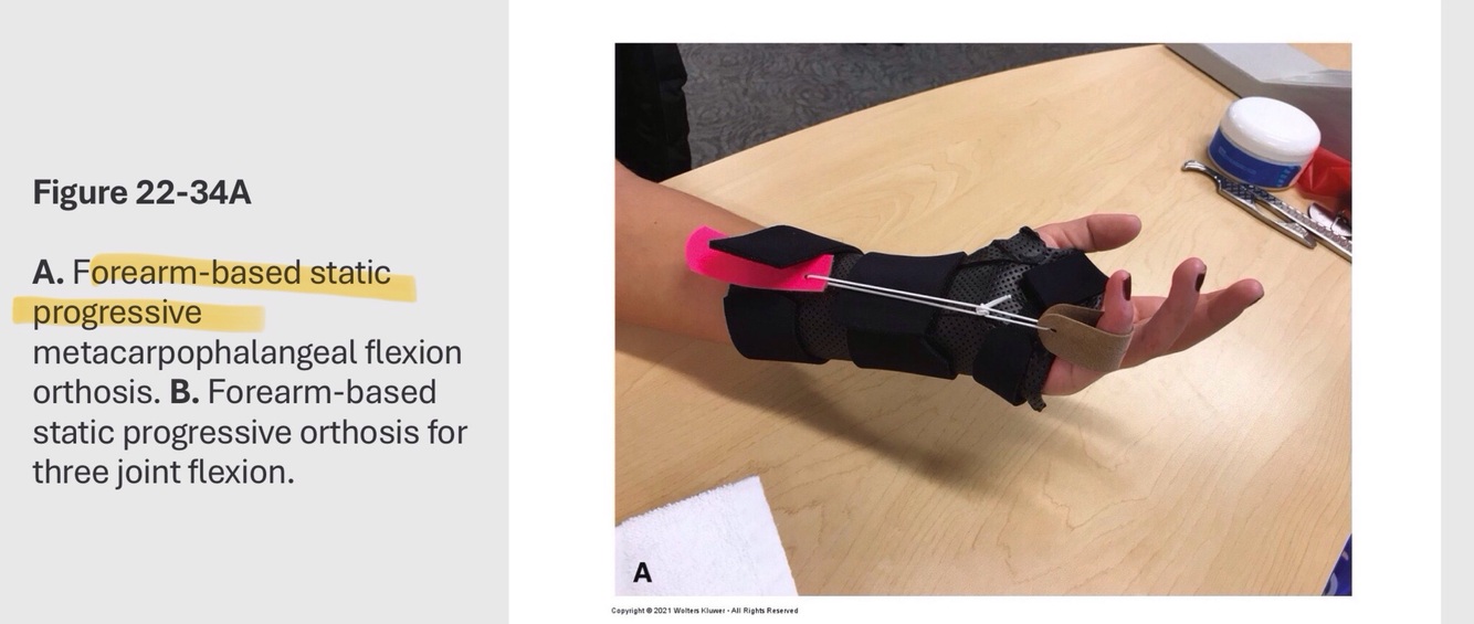 Which orthosis purpose increasing motion is to provide stretch. Provides continuous stretch to a stiff body part in one direction and allows the body part to move in the opposite direction.