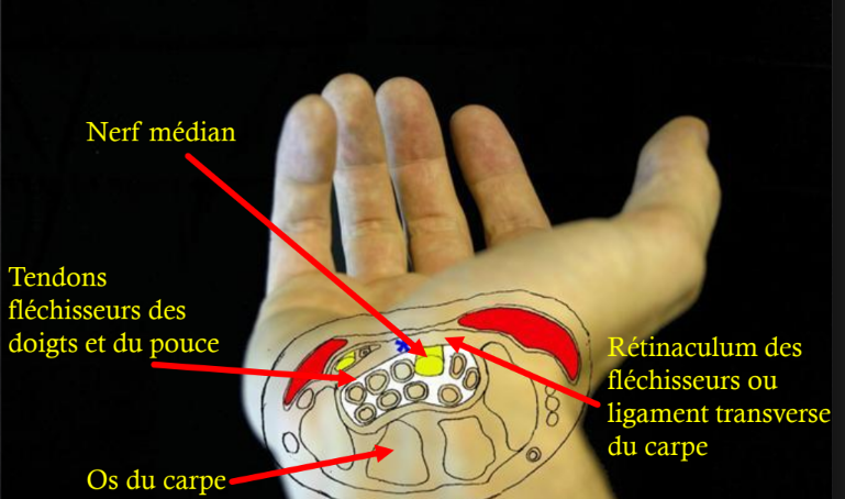 Quel nerf est comprimé dans un canal carpien?