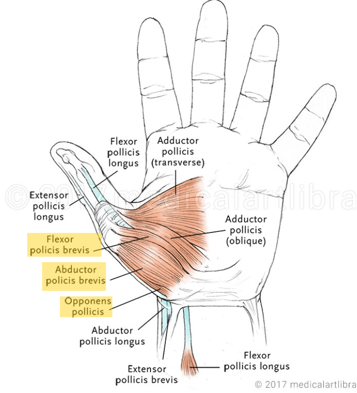 Opposant du pouce, Abducteur court du pouce, Fléchisseur court du pouce