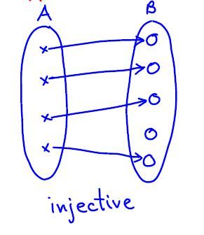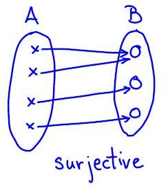 A function f: A –> B is surjective (onto) if all the elements of B are associated to some element of A.