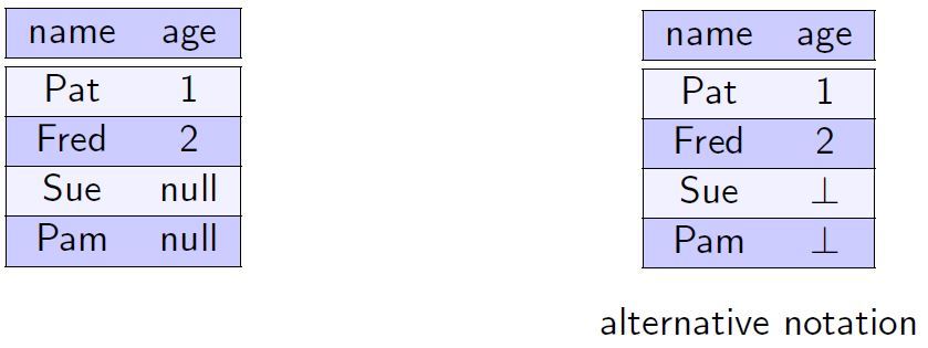 A special null value is used to represent values that are unknown or inapplicable to certain tuples.