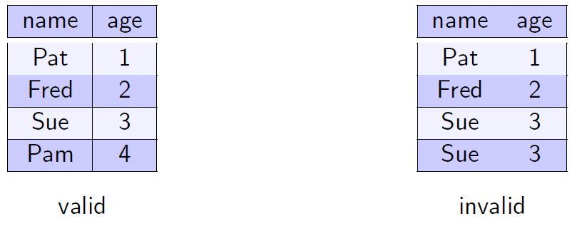 No two tuples in a relation may have identical values for all attributes
