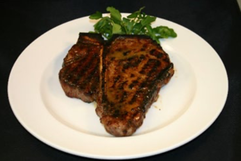 a NY Strip and a Filet Mignon, separated by a flavor-enhancing bone, dry-aged for 18-24 days and hand carved in house; prepared simply broiled and brushed and with our house-made steak butter enhanced with Kobe Beef Tallow.