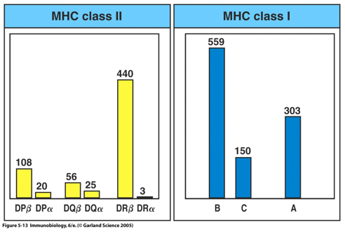 Known allelic frequencies for MHC Class I vs II?