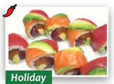 In: avo, tuna, albacore, crab salad, tobiko, mango