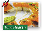Out: tuna, avo. and creamy, sp. mayo, unagi sauce