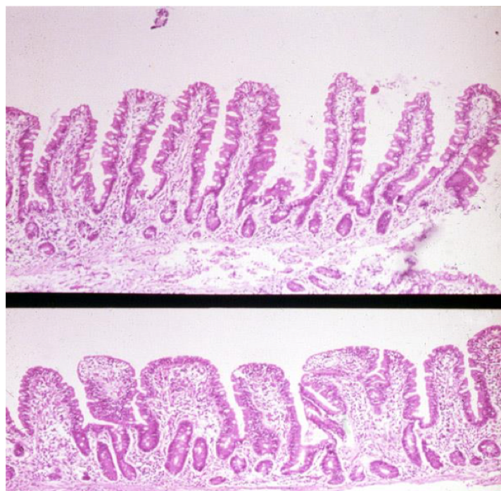 Hur ser en celiaki-duodenum ut rent mikroskopiskt?