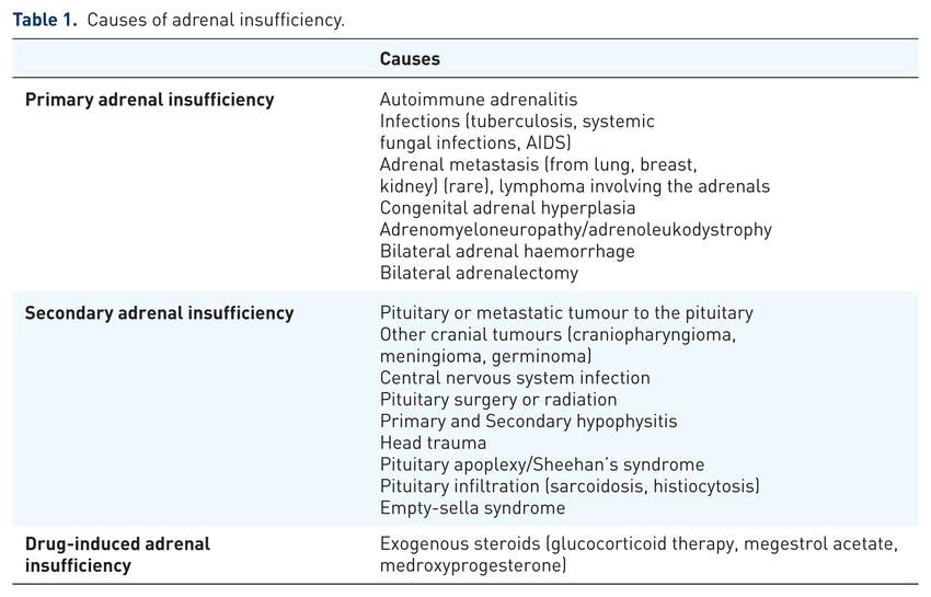 Quels sont les causes de l’insuffisance surrénaliennes?
