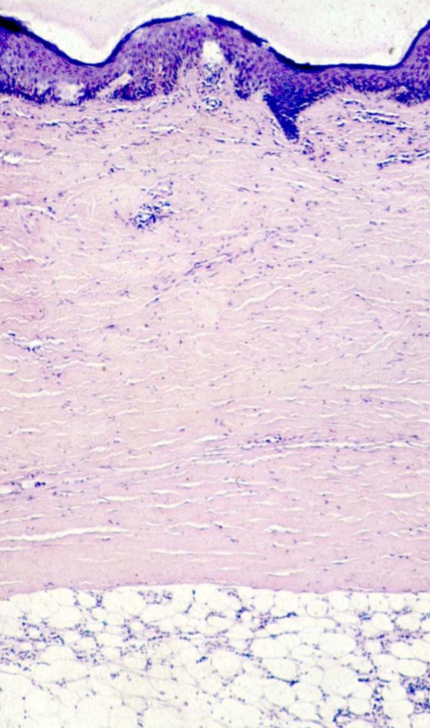Augmentation quantité de collagène dans la peau (derme) + parfois dans d’autres organes => sclérose du derme avec disparition des annexes