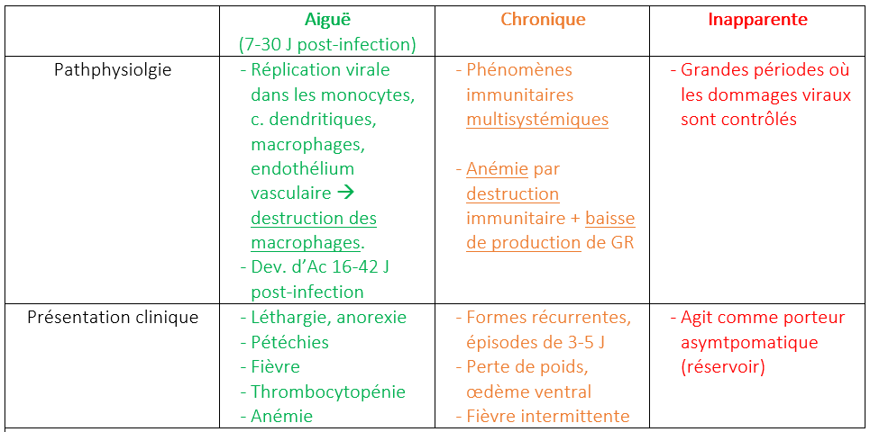 Nommer 3 phases avec leur pathophysiologie et présentation clinique