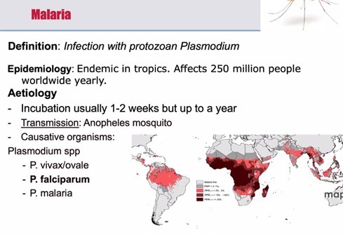 Malaria is a parasitic infection caused by protozoa of the genus Plasmodium. Five species are known to infect humans; Plasmodium falciparum is the most life-threatening