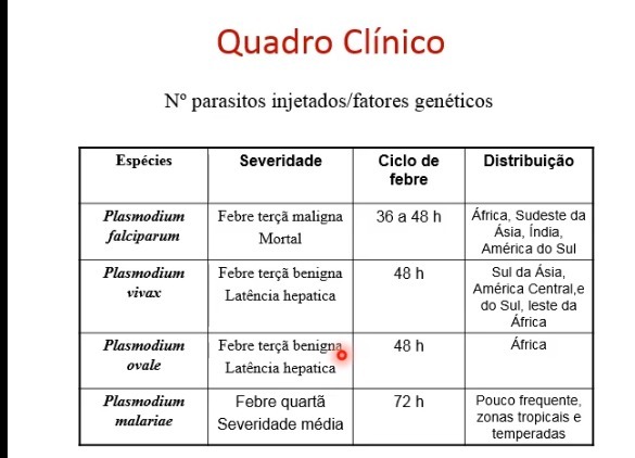 Febre intermitente relativa aos diferentes tipos de Malária