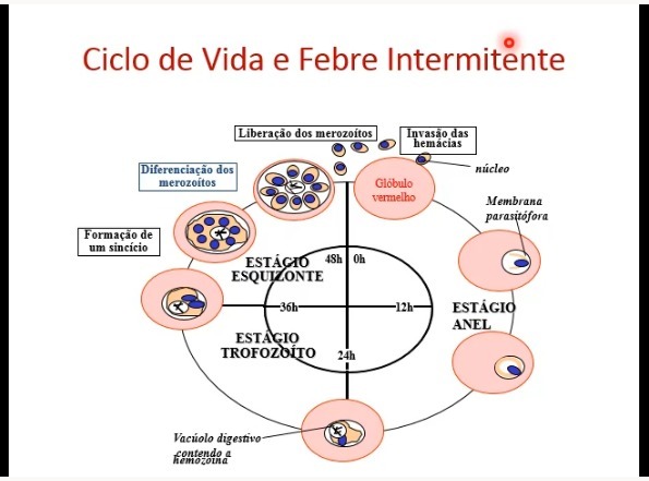 Relação entre a febre intermitente e o ciclo de vida do plasmodium
