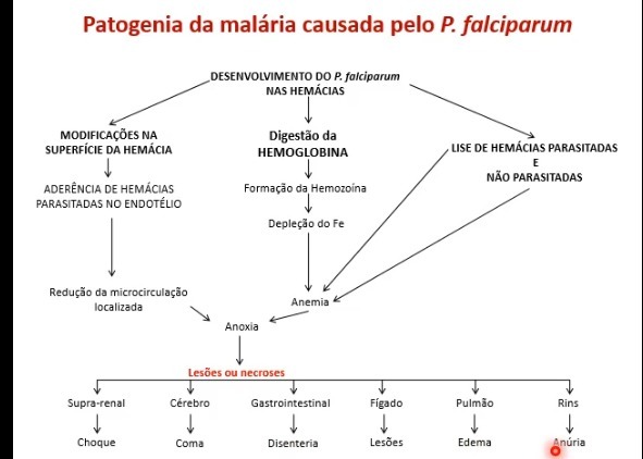 Relação entre a malária e a insuficiência respiratória, insuficiência renal e a malária cerebral.