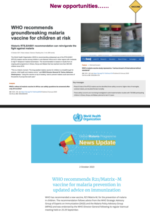 Det finns idag 2 nya vaccin mot malaria men dem är inte….