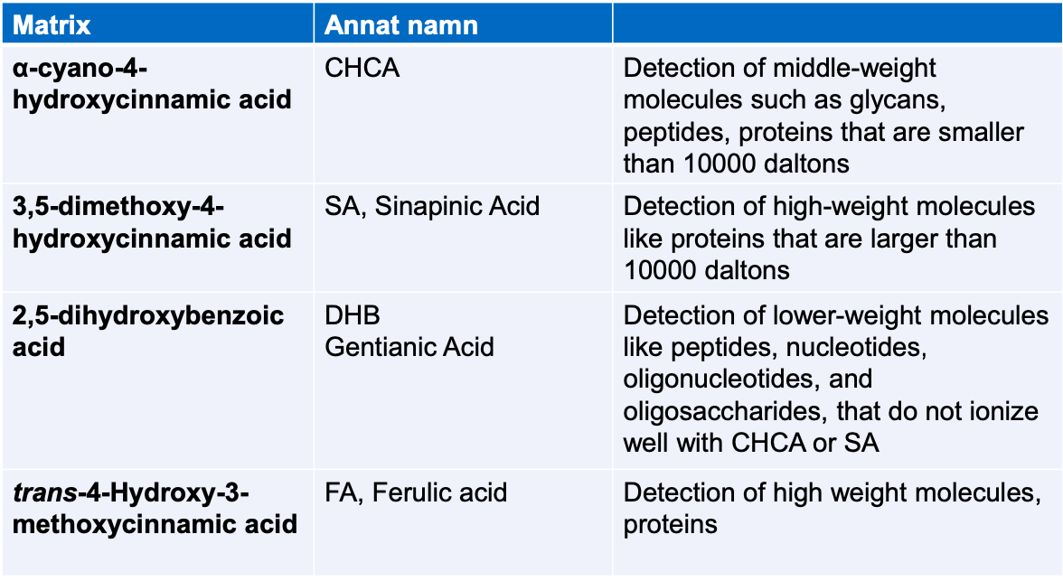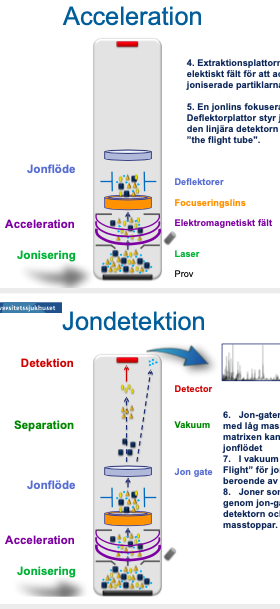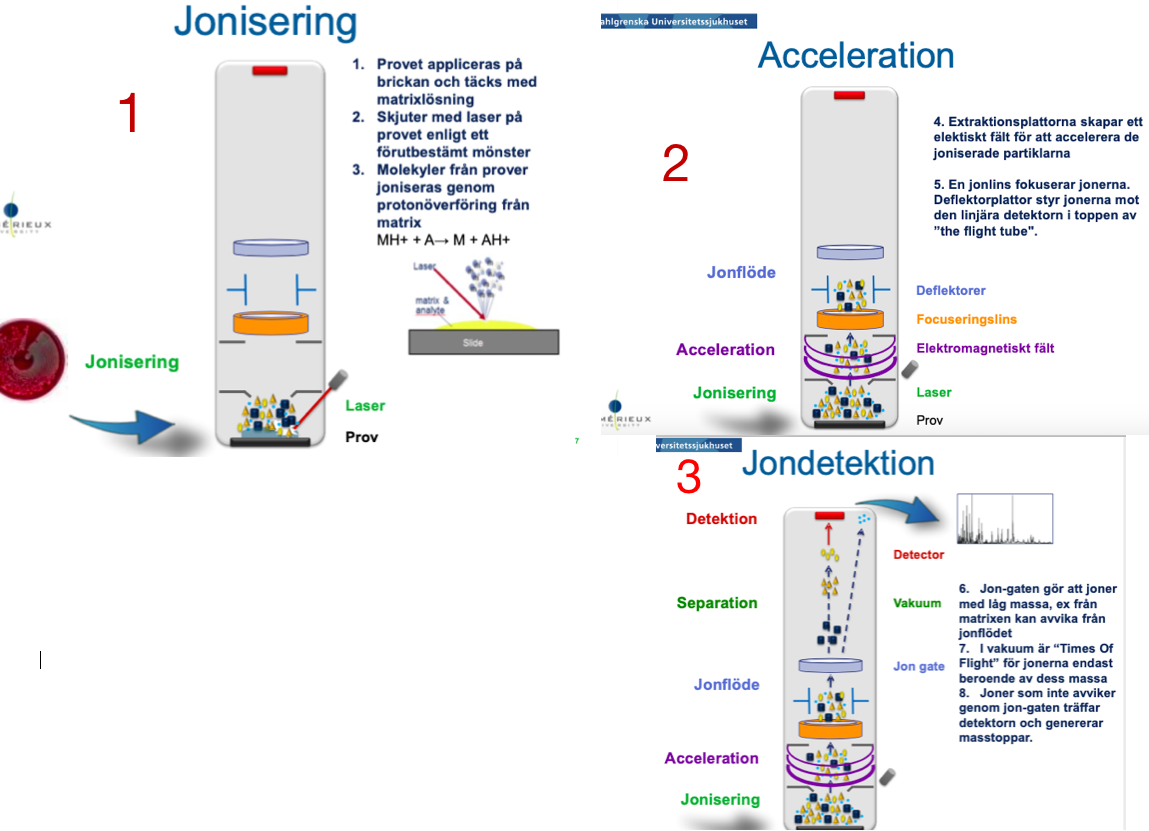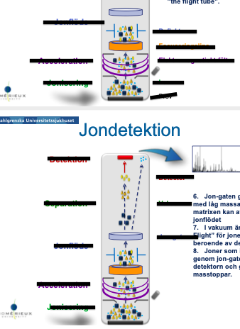 Beskriv stegen i MALDI TOF