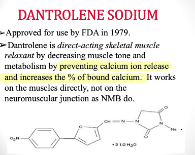 ○Calcium reuptake is blocked ○“Triggering agents” for MH release calcium from storage sites in the muscle (sarcoplasmic