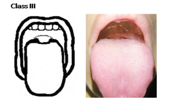 Visualize soft palate, fauces, entire uvula (anterior and posterior)
