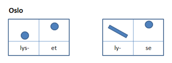 I de østnorske dialektene så uttaler man de trykktunge stavingene jevnt over med en lavere tone enn de trykklette.
