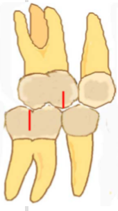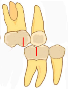 mesiobuccal cusp of upper 6 anterior to anterior buccal groove of lower 6