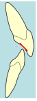 lower incisal edge occludes with or just below cingulum plateau of upper 1