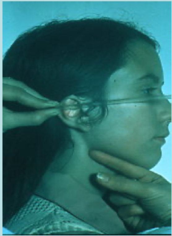 by looking at Frankfurt horizontal plane and the line of the lower jaw. They should meet at the back of the skull