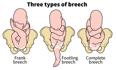 What are the types of breech presentation?