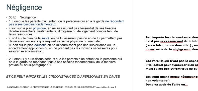 on considère que c’est lorsque les parents ne répondent pas à ses besoins fondamentaux