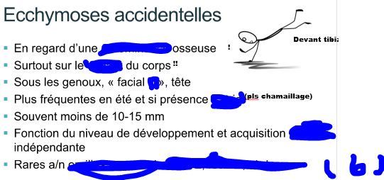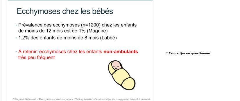 ( q était juste pour dire que pas supposé piouvoir guesser age de l’ecchymose, et je sais pas si je trusterais le parent à moins que ca fasse bin du sens;)