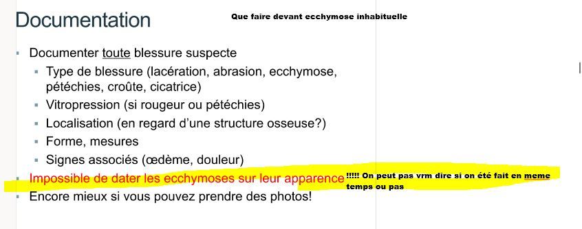 mais attention si patient NON AMBULANT bIN la non , tout eccymose est suspecte