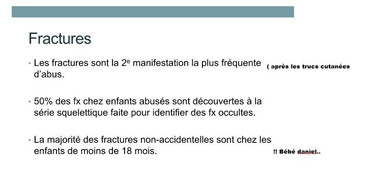 nomme moi une fracture hautement spécifique d’abus , et imagine toi là à la radio