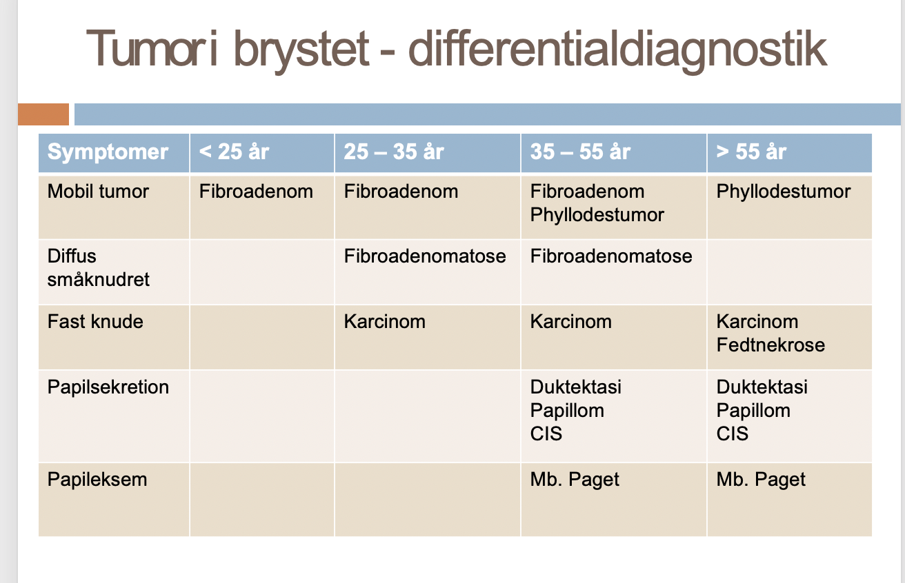 Hvilken tumor i mamma er hyppigst hos yngre (< 40) kvinder? a. Papillom