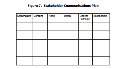 how is each stakeholder going to be communicated with/ how often/ who’s responsible?