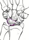 Também chamado de sinal de Duchenne, devido déficit de inervação ulnar, ocorre atrofia da musculatura intrínseca da mão e fraqueza do terceiro e quarto lumbricais.