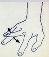 Por compressão do nervo ulnar, ocorre fraqueza do terceiro interósseo palmar responsável pela adução do quinto dedo, dessa forma o paciente apresenta um déficit da adução do quinto dedo.