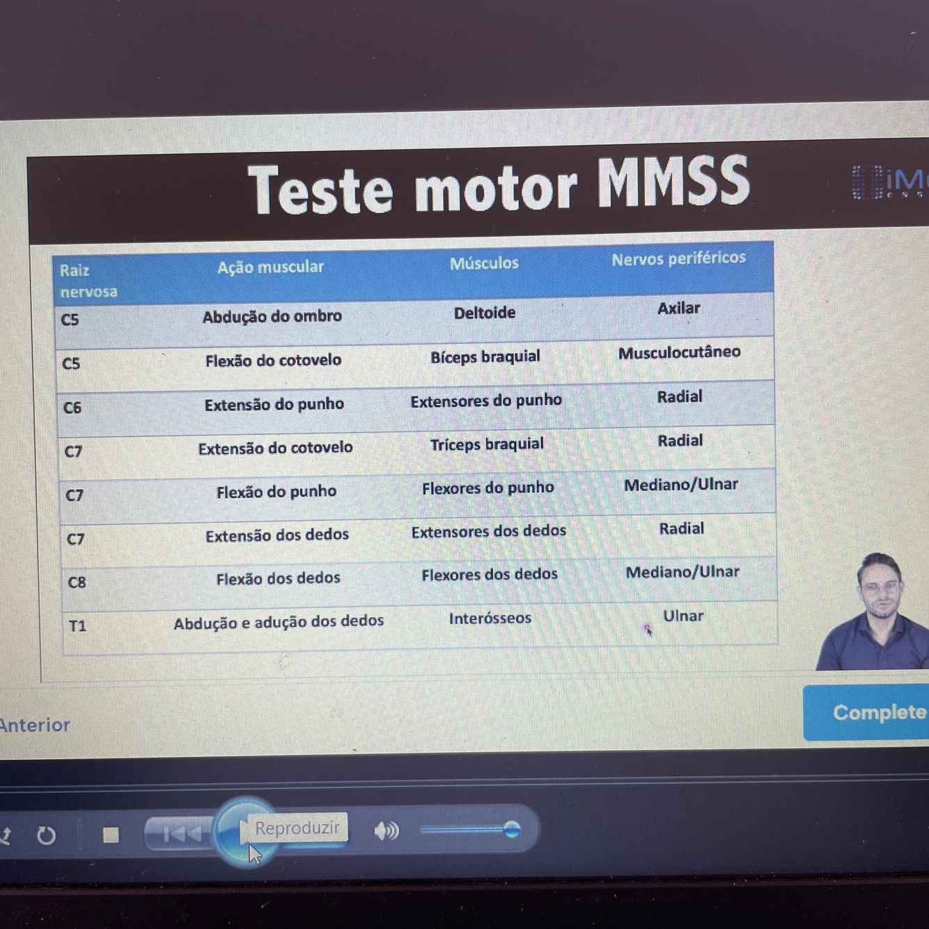 Inervação compartimento anterior do antebraço e intrínsecos tentares